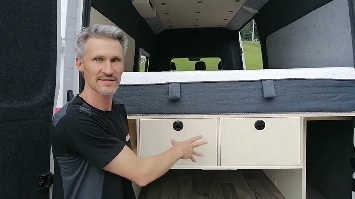 Machen Sie mit uns einen Blick in einen ehemaligen Lieferwagen, den wir nach Kundenwunsch als Camper ausgebaut haben: